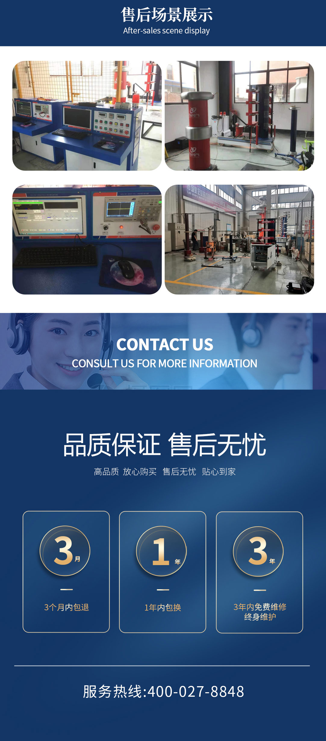 我們的售后服務承諾是:“3個月內包退,1年內包換、3年免費維修,終身維護”。在未來的日子里,我們將一如既往的堅持三類星級服務!