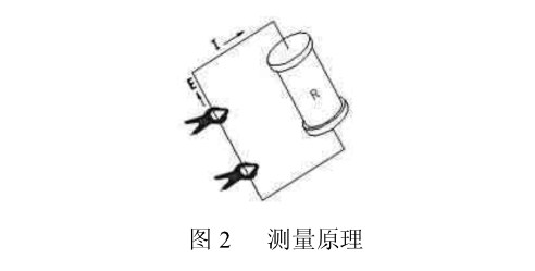 雙鉗口接地電阻測試儀配有兩個鉗口:電壓鉗和電流鉗。如圖2所示,電壓鉗在被測回路中激勵出一個感應電勢E, 并在被測回路產生電流I,儀表通過電流鉗可以測得Ⅰ值。通過對E、I的測量,由歐姆定律:R=E/I,即可求得R的值。