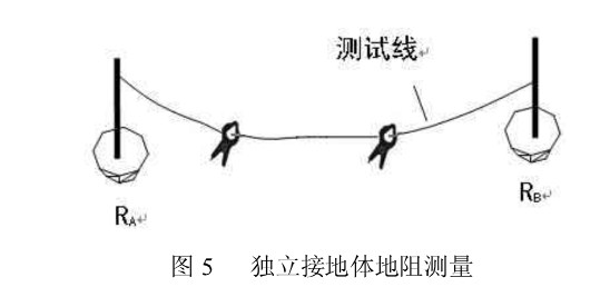 c、機房處于較高樓層時,(二層以上),可采用“獨立接地體”測試方法此種方法是基于將自來水管網的接地電阻理論上認為是零歐姆,但實際上是有電阻值的,此時測試分為二步:第一步,按“獨立接地體”測試方法測出 RA;第二步,單獨在一樓將自來水管的接地電阻按“地樁”測試方法測出 Rg(此時自來水管看作獨立接地體),(RA-RB)即為機房接地裝置的實際接地電阻。